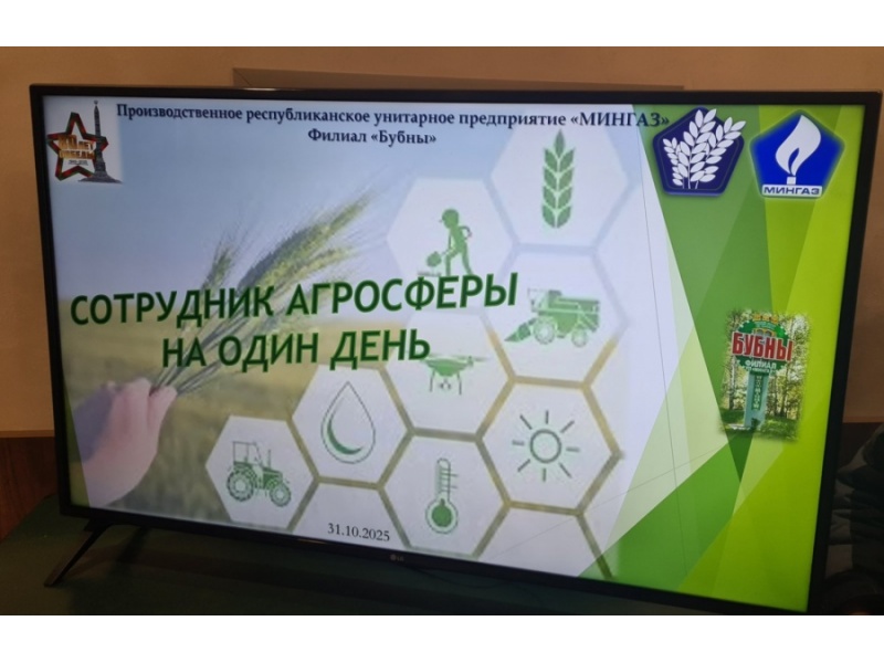 31 октября 2025 г. декан факультета довузовской подготовки и профориентации молодежи Гаркуша К.Э. вместе с учащимися Долгиновской, Людвиновской средних школ Вилейского района, студентами Ильянского государственного аграрного колледжа стала сотрудником сельскохозяйственного филиала «Бубны» УП «Мингаз» на один день.