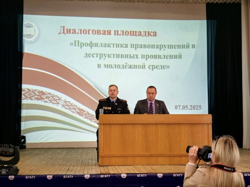 [node:title]7 мая 2025 года, для студентов 3 курса БГАТУ, проходит диалоговая площадка на тему: "Профилактика правонарушений и деструктивных проявлений в молодёжной среде". Спикерами мероприятия выступают сотрудники РУВД Первомайского района г. Минска