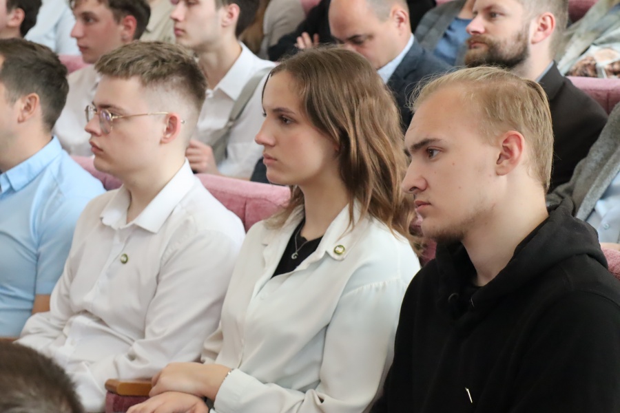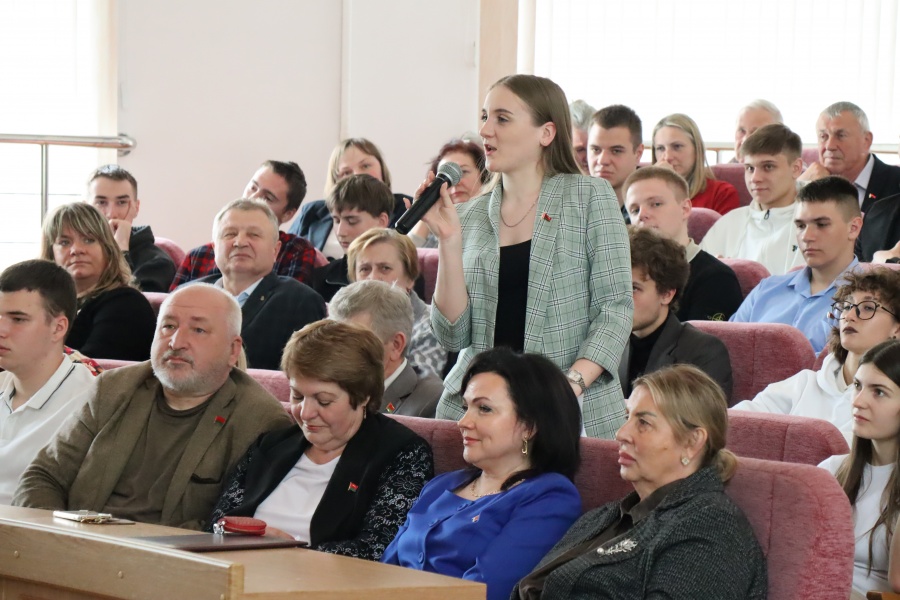 Главная>Фотоархив>Встреча начальника главного управления идеологической работы и по делам молодежи Мингорисполкома Ольги Чемодановой с работниками и студентами БГАТУ 22.05.2025