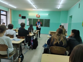 Для лучшего усвоения знаний в качестве иллюстраций к ответам Наталья Петровна использовала плакаты студентов БГАТУ – участников выставки ко Дню Конституции Республики Беларусь, состоявшей в нашем университете 14 марта 2019 года, и рассказала, что учиться в БГАТУ очень увлекательно и занимательно. Школьники задавали и вопросы о профориентации. Наталья Петровна показала презентацию о БГАТУ и обратила внимание на особенности поступления и интересные моменты обучения в нашем университете. Обсуждение темы вызвало живой интерес и отклик у школьников, ведь это поможет им определиться с выбором кем они хотят стать.