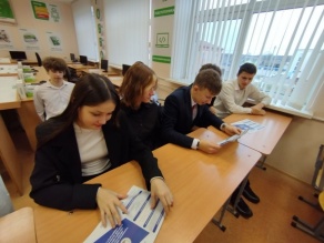 Для лучшего усвоения знаний в качестве иллюстраций к ответам Наталья Петровна использовала плакаты студентов БГАТУ – участников выставки ко Дню Конституции Республики Беларусь, состоявшей в нашем университете 14 марта 2019 года, и рассказала, что учиться в БГАТУ очень увлекательно и занимательно. Школьники задавали и вопросы о профориентации. Наталья Петровна показала презентацию о БГАТУ и обратила внимание на особенности поступления и интересные моменты обучения в нашем университете. Обсуждение темы вызвало живой интерес и отклик у школьников, ведь это поможет им определиться с выбором кем они хотят стать.