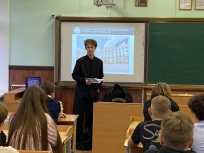 Для лучшего усвоения знаний в качестве иллюстраций к ответам Наталья Петровна использовала плакаты студентов БГАТУ – участников выставки ко Дню Конституции Республики Беларусь, состоявшей в нашем университете 14 марта 2019 года, и рассказала, что учиться в БГАТУ очень увлекательно и занимательно. Школьники задавали и вопросы о профориентации. Наталья Петровна показала презентацию о БГАТУ и обратила внимание на особенности поступления и интересные моменты обучения в нашем университете. Обсуждение темы вызвало живой интерес и отклик у школьников, ведь это поможет им определиться с выбором кем они хотят стать.