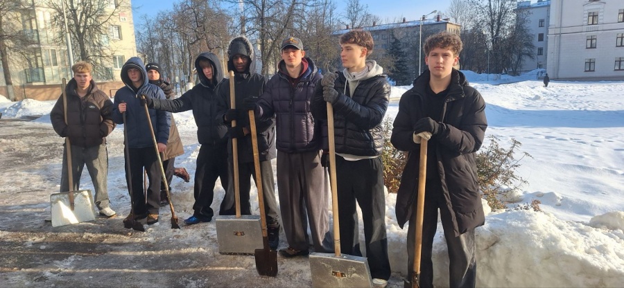 26 февраля 2026 года мужская половинка группы оказала помощь в уборке снега на территории университета.