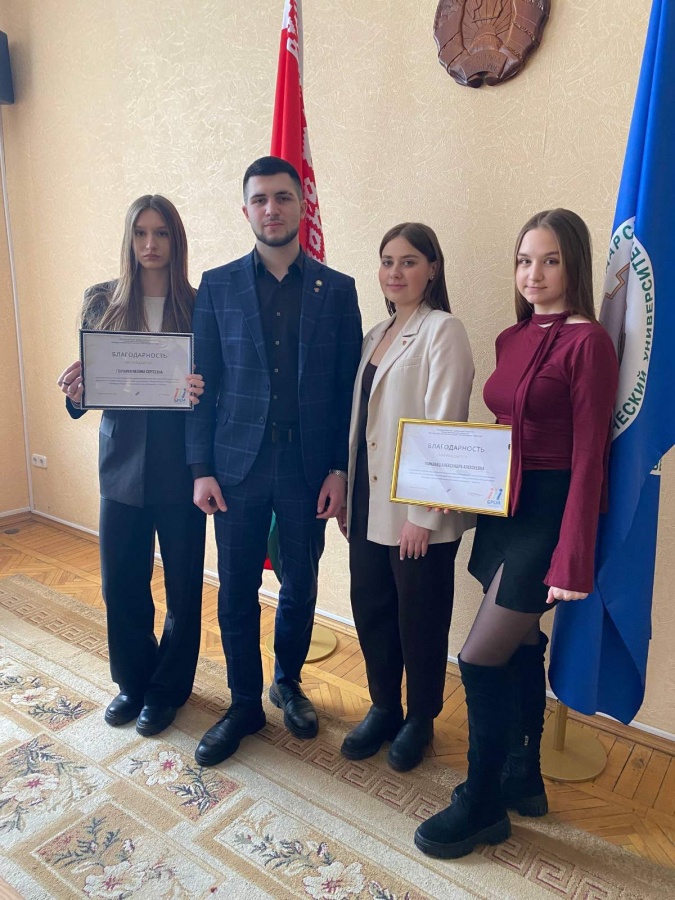 27 февраля 2026 года студенческий актив группы принял участие в расширенном заседании комитета ПО ОО «БРСМ» БГАТУ, где Гончарко П. и Панковец А. получили благодарности за активное участие в реализации государственной молодежной политики от Первого секретаря Первомайского районного комитета ОО «БРСМ»