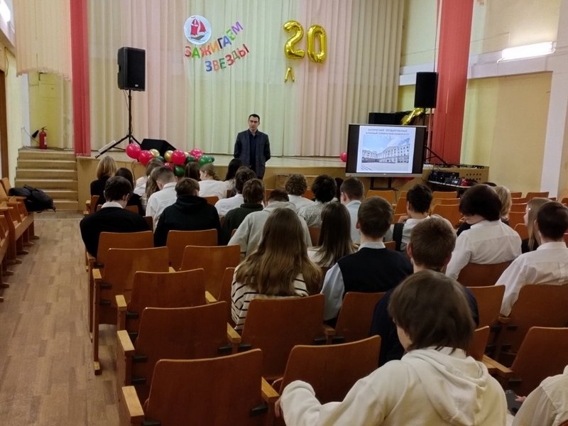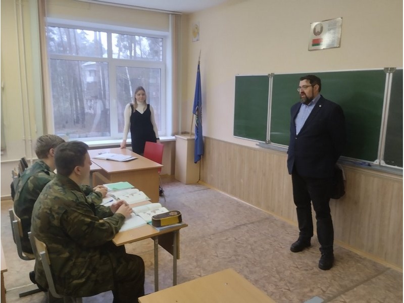 Заведующий кафедрой Евгений Александрович ГРЕБЕНЬ и старший преподаватель кафедры Сергей Викторович МЕНЬЧЕНЯ познакомили выпускников школ с нашим университетом, его преимуществами, условиями поступления и специальностями, по которым проводит подготовку БГАТУ. На встречи присутствовали, в том числе, и учащиеся классов патриотической направленности. Поэтому нашими коллегами подчёркивалось, что нет более патриотического занятия в мирное время, чем заниматься укреплением продовольственной безопасности страны, к чему БГАТУ, как легко догадаться, имеет самое непосредственное отношение, занимаясь подготовкой специалистов для агроиндустрии Беларуси и не только.
