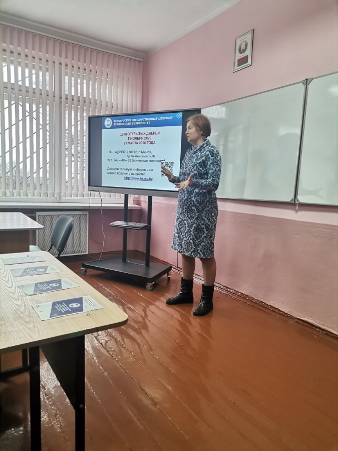 1-2 декабря 2025 года старший преподаватель кафедры экономической теории и права Коренная Н.П. и инженер кафедры технологии и организации технического сервиса Шукан М.М. посетили средние школы (агроклассы) агр. Верейки, Гнезно, Шиловичи, Субочи Волковысского района Гродненской области, где провели профориентационные беседы с выпускниками учреждений образования и рассказали учащимся о преимуществах поступления в БГАТУ выпускников агроклассов.