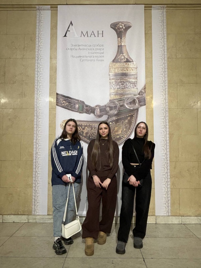 8 января 2026 года студенты курируемой 3 эк группы посетили уникальную выставку «Элегантность серебра: сокровища Оманского двора».  Эта масштабная экспозиция, прибывшая из коллекции Национального музея Султаната Оман, представляет богатое историческое и культурное наследие этой загадочной страны. Студентов ждали изысканные произведения оманских мастеров: парадные кинжалы, пояса, амулеты, ювелирные украшения и аксессуары, выполненные с невероятным искусством обработки серебра.