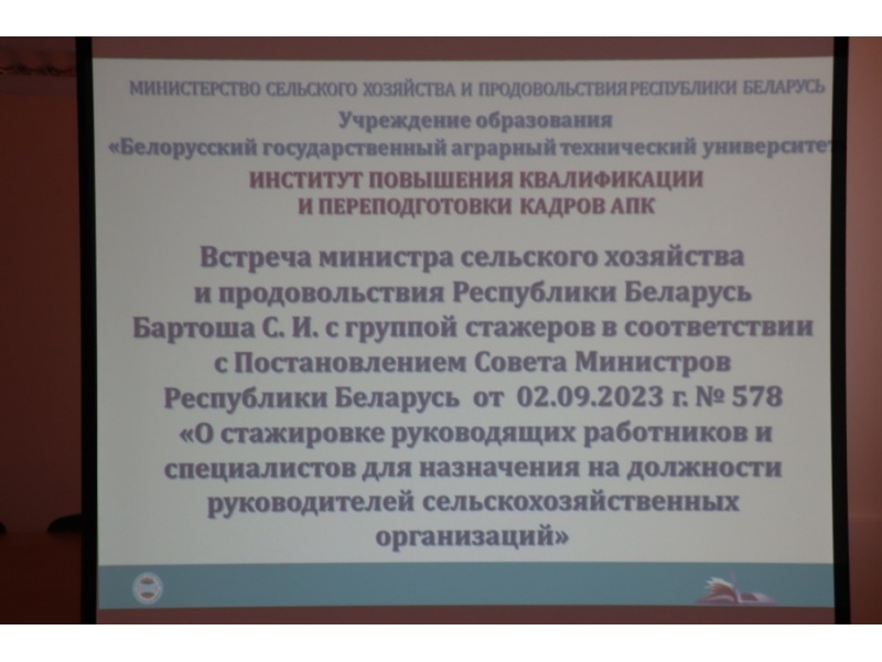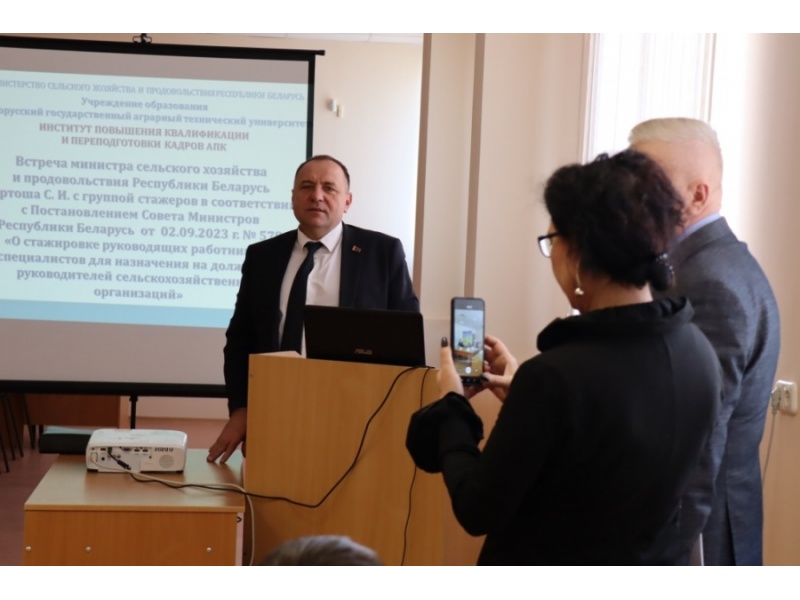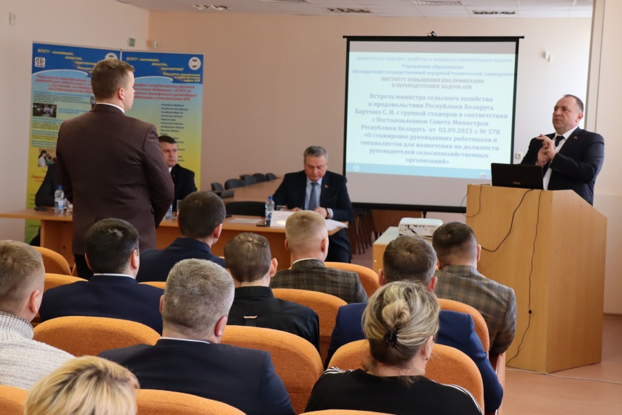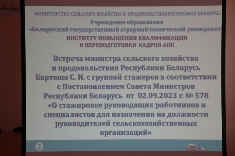 Встреча министра сельского хозяйства и продовольствия Республики Беларусь Бартоша С.И. с группой стажеров ИПК и ПК АПК 16.01.2023