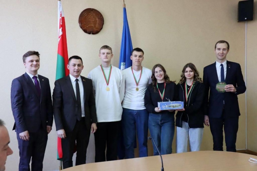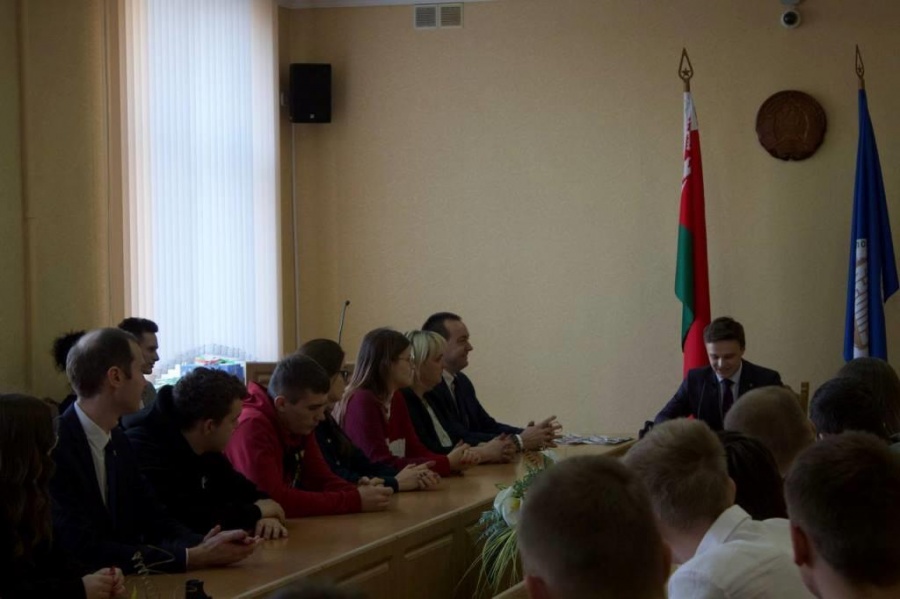 Роман Бондарук - первый секретарь Минского городского комитета ОО «БРСМ», депутат Минского городского совета депутатов 29-го созыва, Владимир Синельников - проректор по идеологической и воспитательной работе и Егор Красуцкий - секретарь ПО ОО «БРСМ» с правами РК БГАТУ.