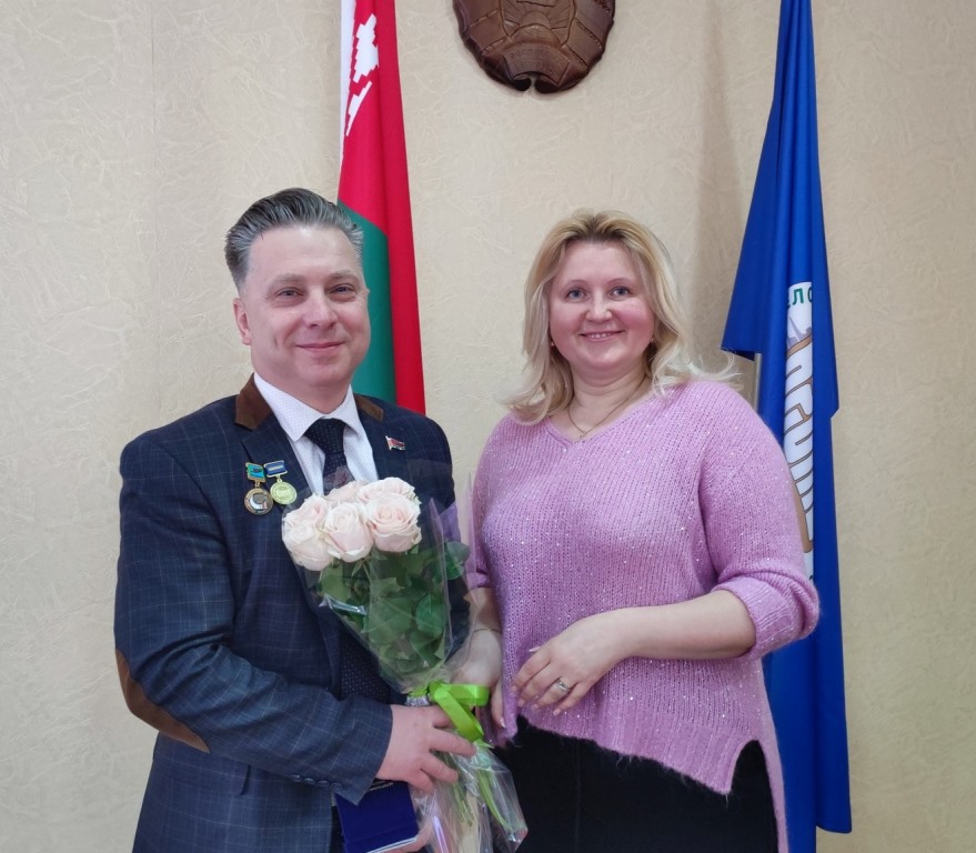 Председатель профсоюзного комитета работников БГАТУ Ольга Мулярова вручила Алексею Мирановичу нагрудный знак "За заслуги". Поздравляем!