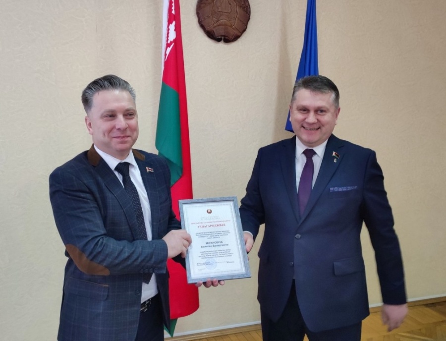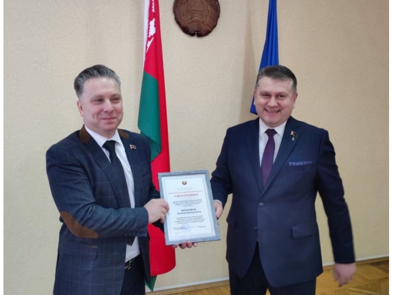 За добросовестный плодотворный труд, достигнутые успехи в организации образовательного процесса, патриотического и общественного воспитания молодежи Николай Романюк вручил Грамоту Министерства образования Республики Беларусь и наградил нагрудным знаком "За заслуги" в развитии Белорусского государственного аграрного технического университета».