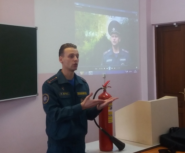[node:title]14 февраля 2019 года, в рамках проведения информационной акции  МЧС "Безопасность в каждый дом", в БГАТУ на факультете предпринимательства и управления  прошла встреча студентов и работников с инспектором РОЧС Первомайского района г. Минска Лесковским Р.К. На встрече присутствовали преставители ОВРМ и секретарь БРСМ БГАТУ.