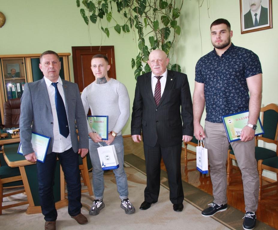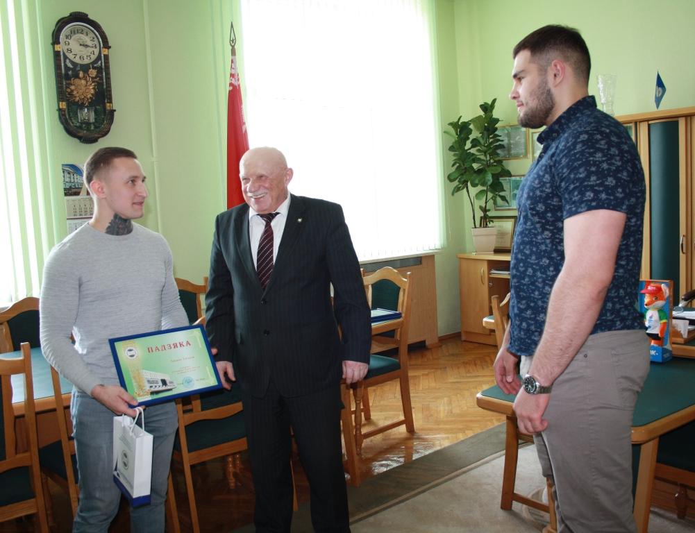 [node:title]26 апреля 2019 года состоялась встреча ректора БГАТУ Шило И.Н. со студентами факультета «Технический сервис в АПК» Геннадием Лаптевым, ставшим чемпионом Европы по тяжелой атлетике (г.Батуми, Грузия) и Эдуардом Зезюлиным, членом национальной сборной Республики Беларусь, который занял 4-е место на чемпионате Европы по тяжелой атлетике. Ректор  поздравил студентов с успешным выступлением на чемпионате Европы, вручил грамоты и памятные сувениры, пожелал новых рекордов и побед в будущих соревнованиях.