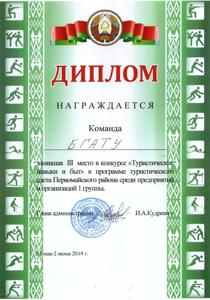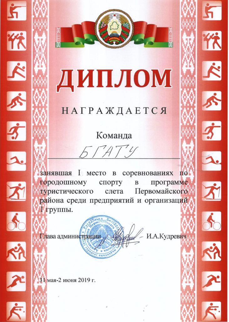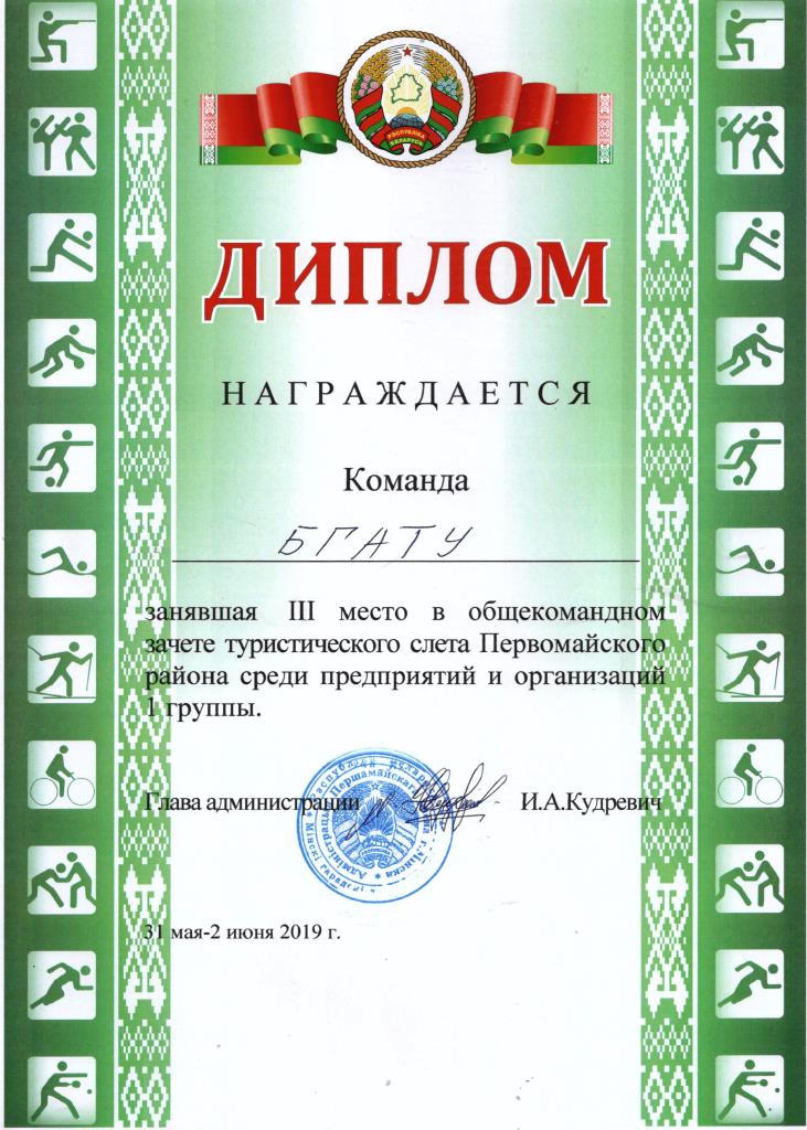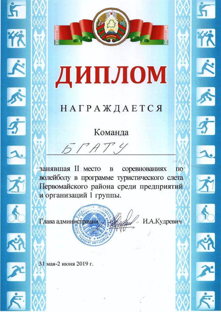 С 31 мая по 2 июня 2019 года в Червенском районе на реке Волма прошел Туристический слет среди команд предприятий, организаций и учреждений, посвященный 50-летию образования Первомайского района г. Минска.