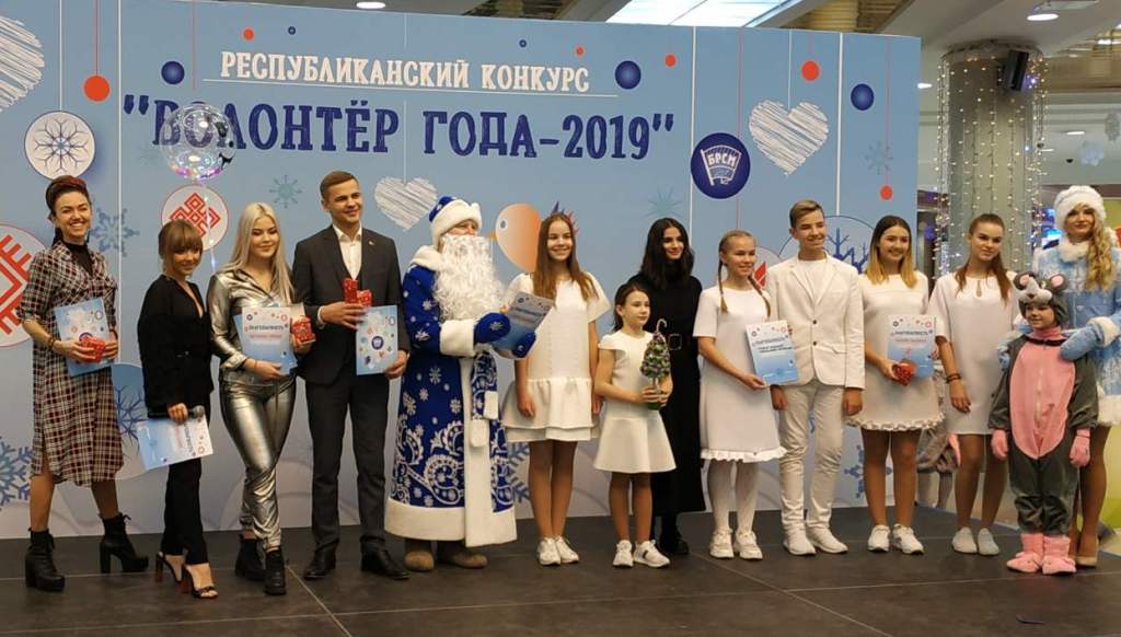 5 декабря 2019 года состоялось награждение победителей республиканского конкурса "Волонтер года - 2019", которое проходило в торговом центре "Столица". Традиционно итоги конкурса подводятся в Международный день добровольцев. В этом году проект проходил под эгидой Белорусского республиканского союза молодежи и Министерства образования Республики Беларусь. Он объединил волонтеров движения БРСМ "Доброе сердце", Белорусского общества Красного Креста, Ассоциации клубов ЮНЕСКО, волонтерских центров учреждений высшего образования и других организаций. Всего в финале конкурса участвовали 64 работы.