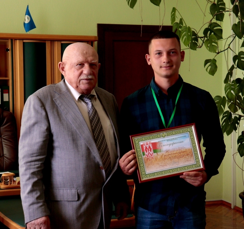 [node:title]25 июня 2020 года  ректор БГАТУ Шило И.Н. торжественно вручил Благодарности Министерства сельского хозяйства и продовольствия Республики Беларусь за отличную учебу, активное участие в научно-исследовательской работе и общественной жизни университета лучшим выпускникам университета, участникам Республиканского бала с Президентом Республики Беларусь: Мельниковой Александре (ФПУ), Кононюку Евгению (АЭФ), Чикунову Максиму (АМФ). Поздравляем ребят и желаем дальнейших успехов!