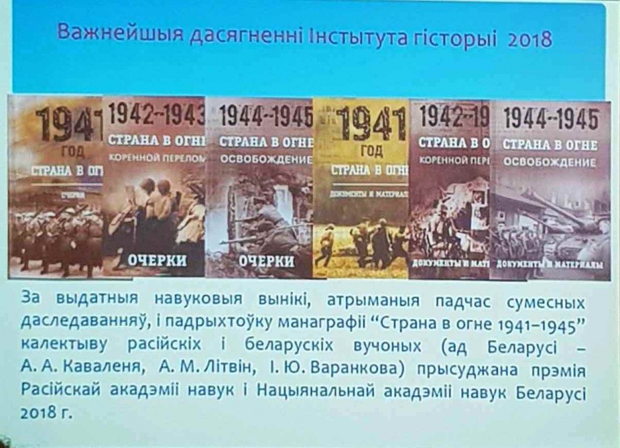 Выступая с докладом «Вклад Института истории НАН Беларуси в изучение и популяризацию историко-культурного наследия страны», Лакиза В.Л. основное внимание обратил на формирование исторического мировоззрения, патриотического воспитания молодёжи, то, что сейчас обсуждается на уровне правительства и Главы государства. Отметил важность гуманитарных дисциплин в университетах - курса истории белорусской государственности, истории Беларуси, литературы и языка, что непосредственно формирует зрелого человека. «Только человек знакомый с основами по гуманитаристике может быть настоящим патриотом и развивать свою страну».