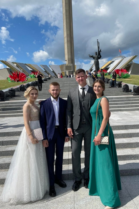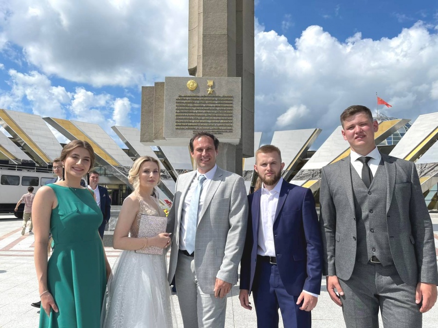 На Республиканском балу университет представили: Альхимович Максим (АЭФ), Гончарова Мария (ФПУ), Нестерович Виктория (ФПУ) и Послед Ян (АМФ).