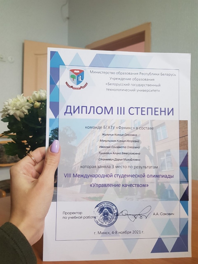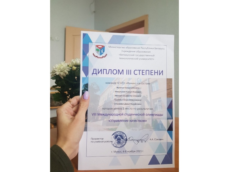 С 1 по 10 ноября в Белорусском государственном технологическом университете проводилась VIII Студенческая олимпиада «Управление качеством» с международным участием, посвященная Всемирному дню стандартов и Всемирному дню качества.
