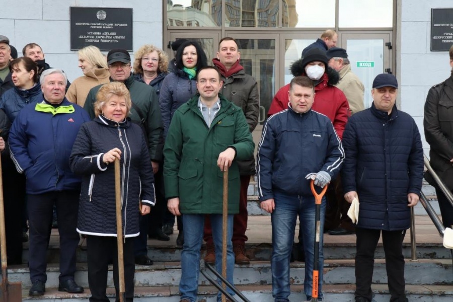 16 апреля 2022 года в Беларуси проходит республиканский субботник. Коллектив учреждения образования "Белорусский государственный аграрный технический университет" вышел на свои рабочие места для того, чтобы навести порядок и внести свой вклад в благоустройство территории университета и общежитий. Команда ректората, во главе с ректором Романюком Н.Н. и председателем профсоюзной организации Рябцевой С.В., привели в надлежащий вид клумбы и малые архитектурные формы возле главного корпуса БГАТУ, подготовив их к озеленению. Проректор по учебной работе и производству Воробьев Н.А., деканы и заместители деканов факультетов вместе с лидерами ОО "БРСМ" благоустроили зеленую зону возле общежитий №№ 5,6, организовав подсыпку земли и разравнивание территории. Проректор по учебной и воспитательной работе Синельников В.М. вместе с заведующими общежитий организовали участие студентов для благоустройства территории студенческого городка и приведения в порядок мест общего пользования внутри общежитий. Несмотря на не совсем благоприятные погодные условия для участия в субботнике добровольно вышло более тысячи работников и студентов нашего университета.