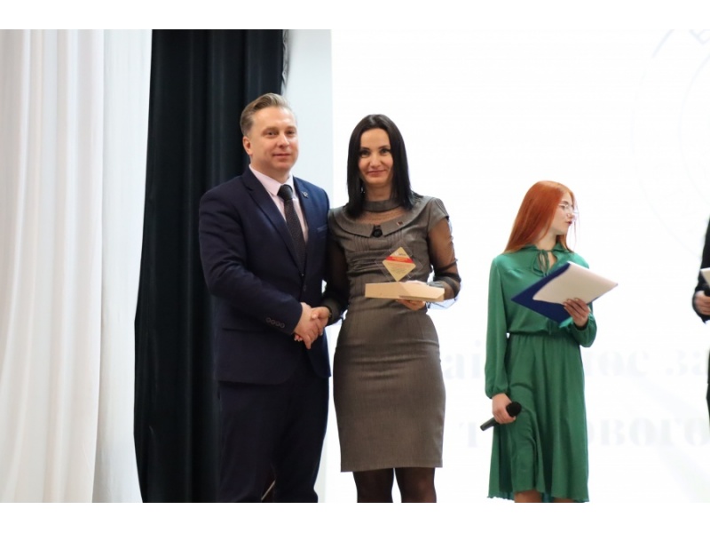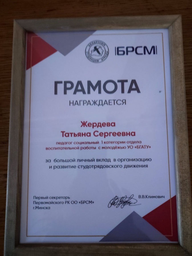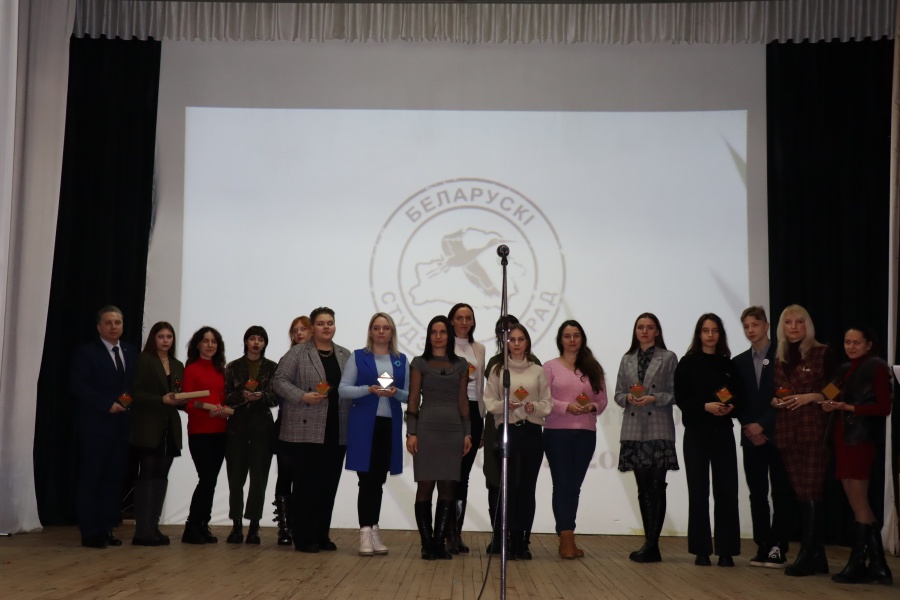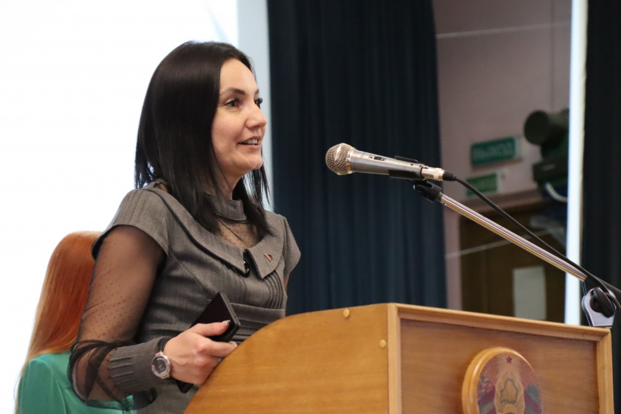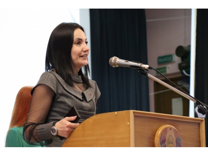 Первый секретарь РК ОО "БРСМ" Первомайского района г.Минска Виктория Климович наградила лучших бойцов студенческих отрядов университета: