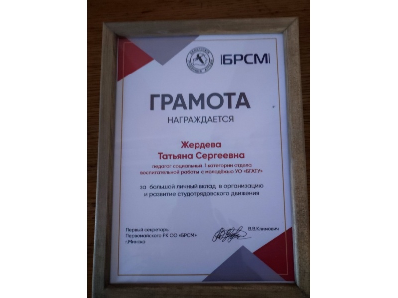 По итогам третьего трудового семестра 2022 за большой личный вклад в организацию и развитие студотрядовского движения награждены Грамотой: