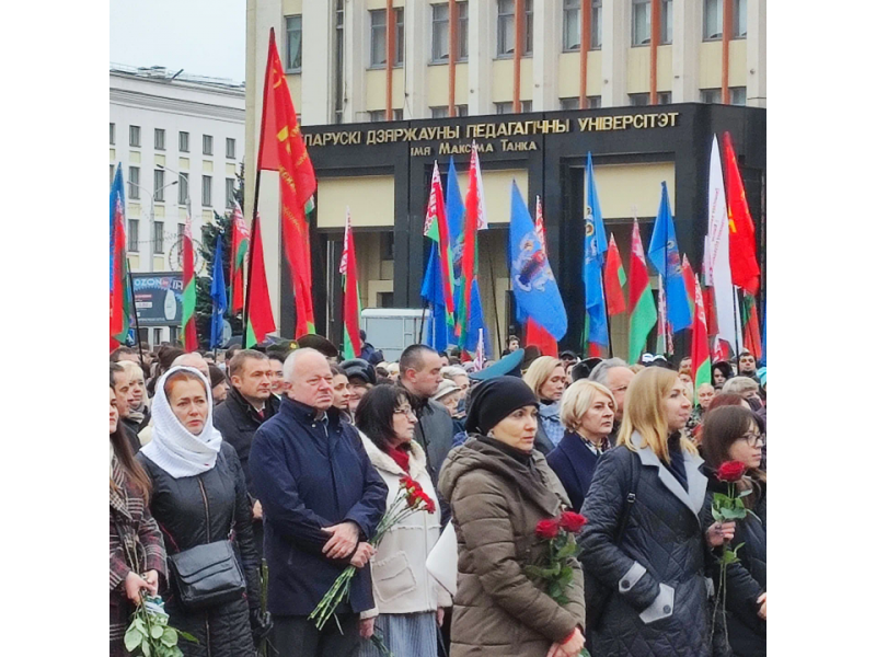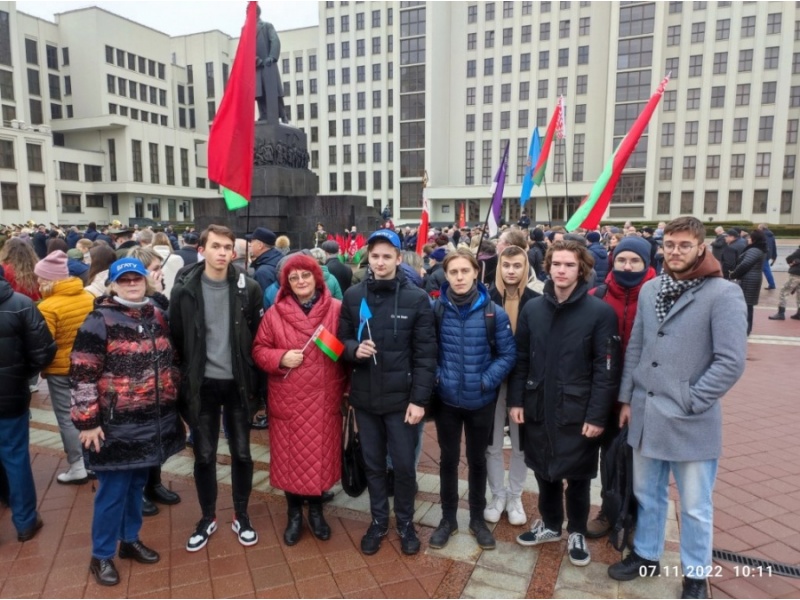 7 ноября 2022 года проректор по учебной и воспитательной работе Синельников В.М., представители отдела воспитательной работы с молодежью и студенты университета приняли участие в торжественном митинге в честь 105-летия Октябрьской социалистической революции. Традиционное место встречи – памятник Ленину, который находится на площади Независимости. На торжественном митинге в честь 105-летия Октябрьской социалистической революции присутствовали представители общественных организаций, представители парламента, руководства Мингорисполкома и иностранных дипломатических миссий. Собравшиеся возложили цветы к памятнику Владимиру Ленину. К участникам мероприятия обратился в том числе глава Коммунистической партии Беларуси Алексей Сокол.