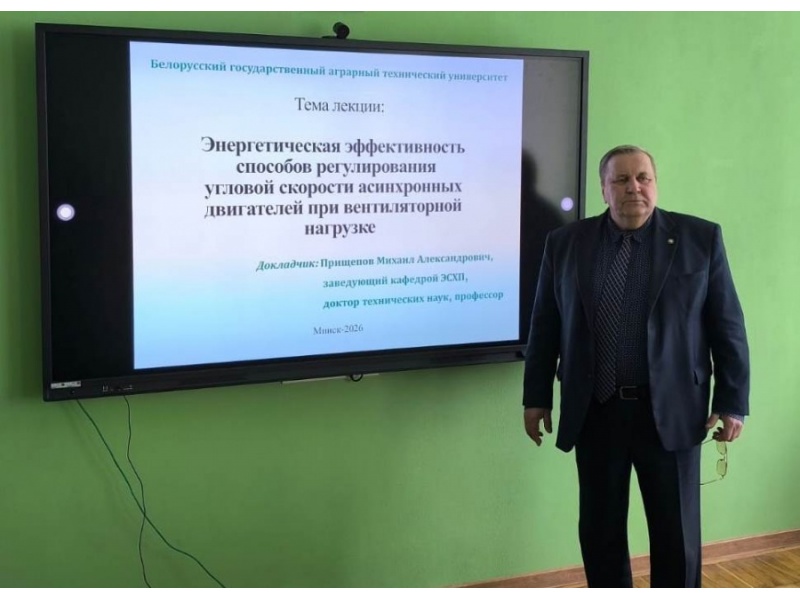 В рамках реализации Соглашения о сотрудничестве в области науки, образования и дополнительного образования взрослых и договоров о реализации совместных образовательных программ 20.03.2026 состоялась онлайн-лекция д.т.н. професссора, заведующего кафедрой электрооборудования сельскохозяйственных предприятий БГАТУ Прищепова М.А, на тему «Энергетическая эффективность способов регулирования угловой скорости асинхронных двигателей при вентилятоной нагрузке» для студентов специальностей «Теплоэнергетическая инженерия» и «Автоматизация и энергетическая эффективность процессов и производств» НАО «Казахский агротехнический исследовательский университет имени Сакена Сейфуллина».