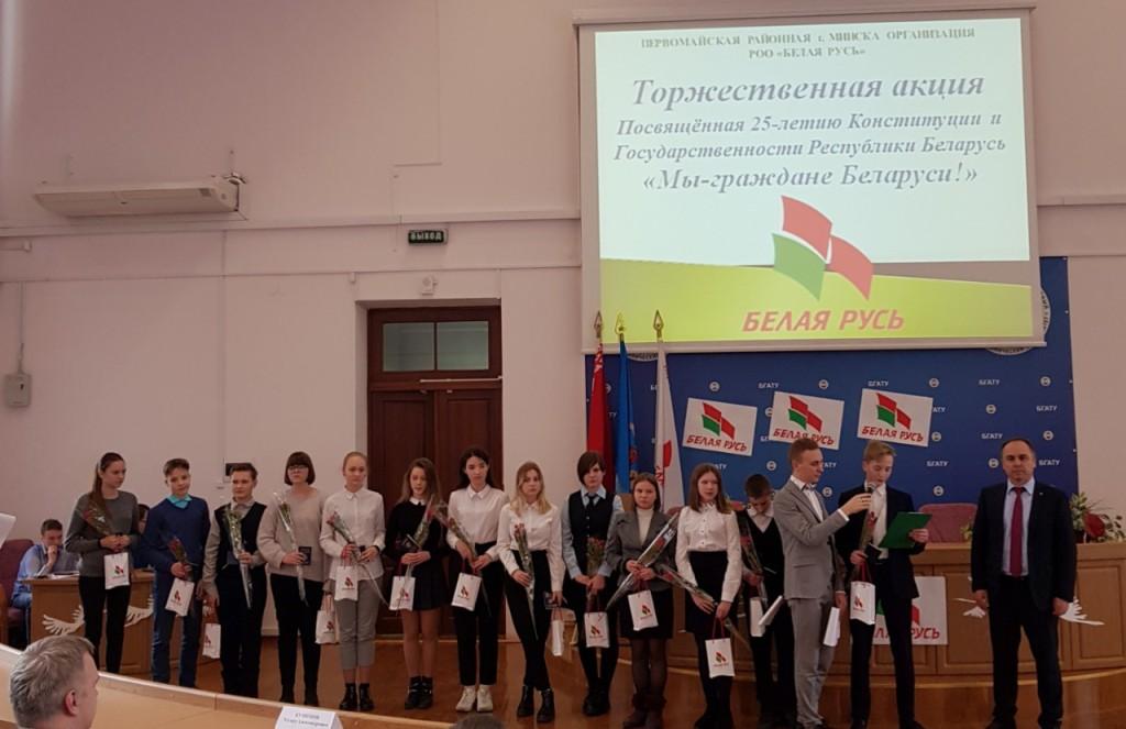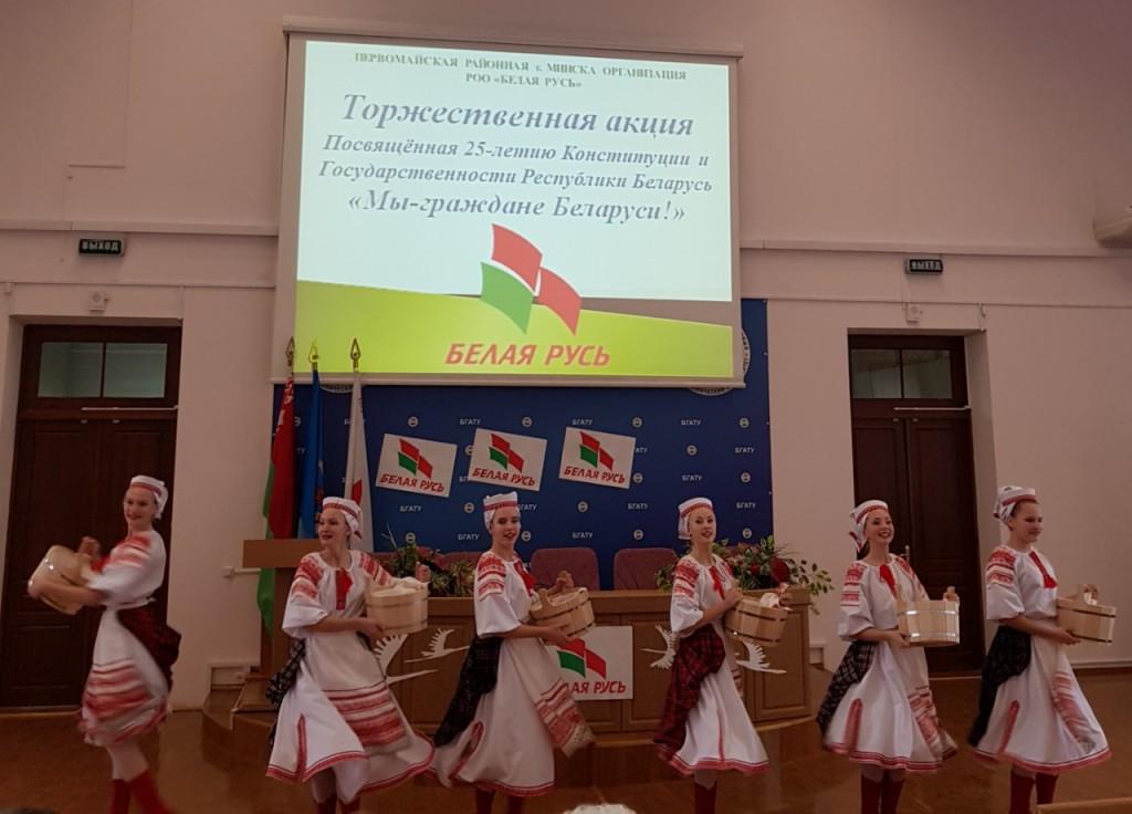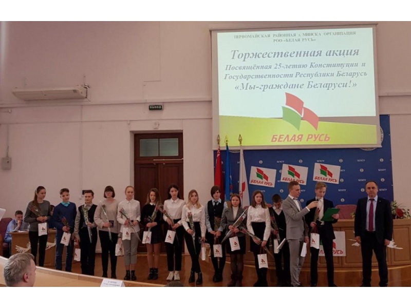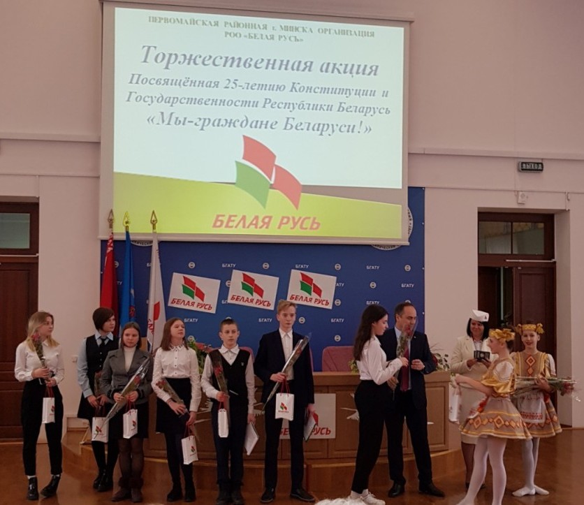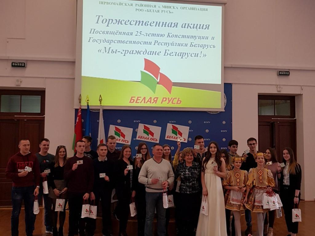 14 марта 2019 года в БГАТУ в рамках республиканской акции «Ты – гражданином быть обязан!» совместно с РОО "Белая Русь" Первомайского района г. Минска прошло торжественное мероприятие, посвященное 25-летию Конституции Республики Беларусь и института президентства в Республике Беларусь.