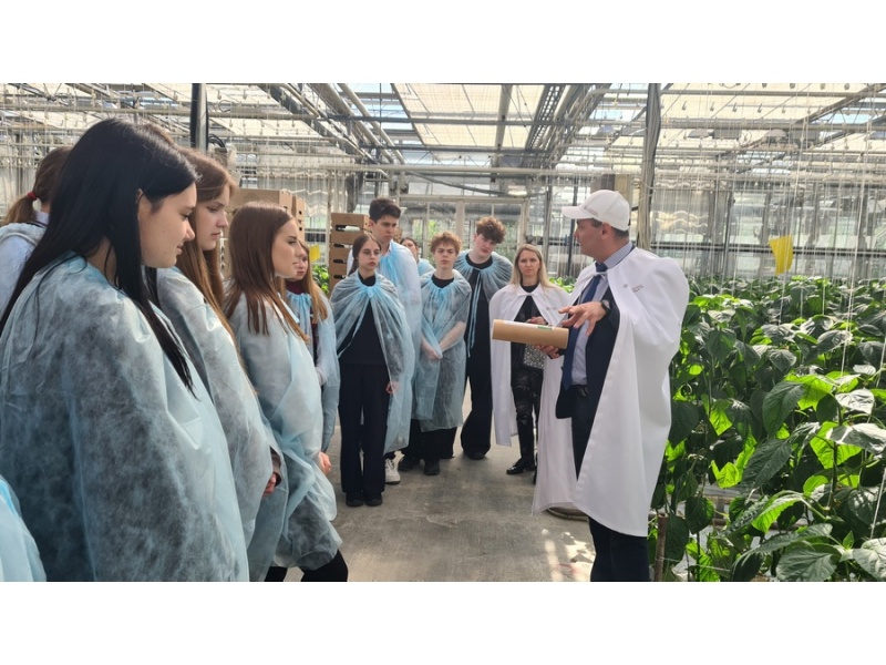 А 15 апреля вновь испеченные аграрии побывали на экскурсии в Минском парниково-тепличном комбинате. Овощи и зелень под маркой «Столичный стандарт» присутствуют на столе у многих минчан. Как обеспечивается круглогодичное выращивание огурцов, томатов, перцев, баклажанов и зелени рассказал генеральный директор комбината Некрашевич Сергей Иванович. Он лично провел экскурсию по теплицам, ознакомил школьников с современной технологией выращивания овощей, а также поведал секреты обеспечения высоких стандартов производимой продукции.