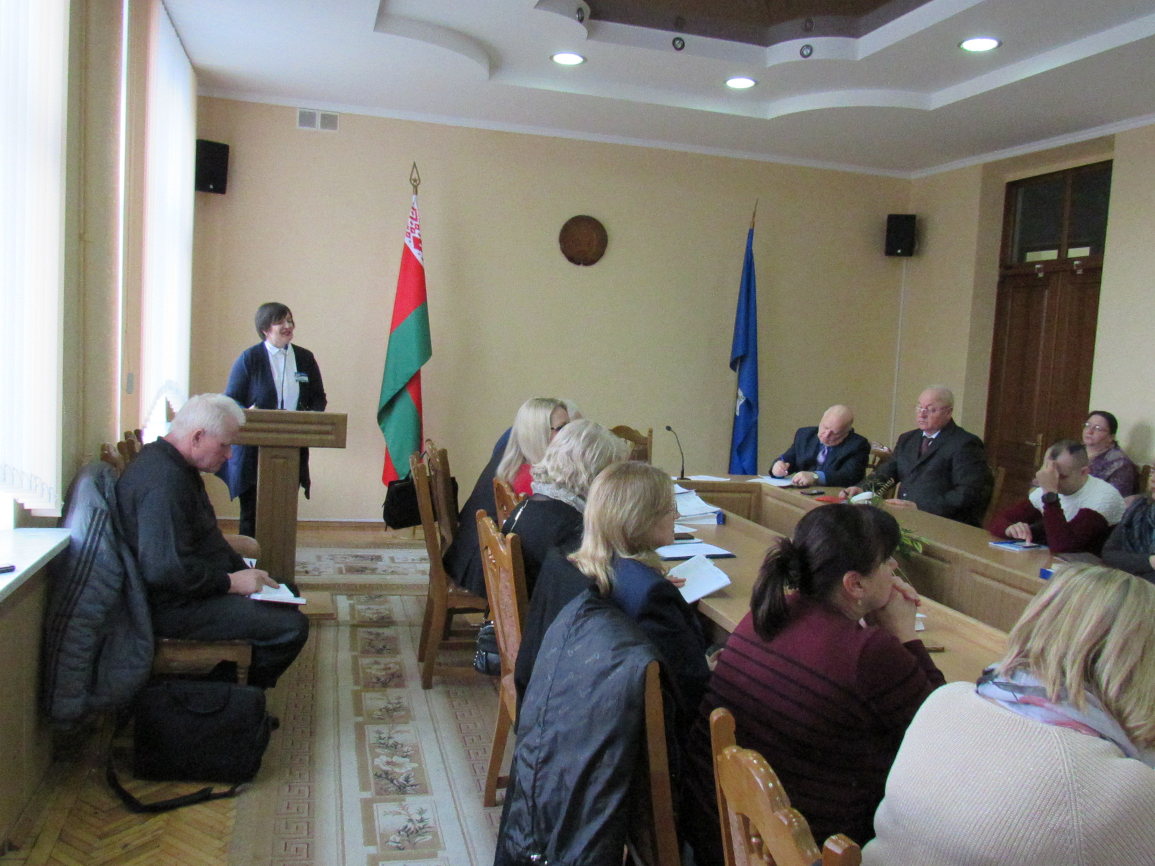 Перед участниками семинара с докладом «Современное состояние проблемы и перспективы развития АПК Республики Беларусь» выступил доцент кафедры инновационного развития АПК Института повышения квалификации и переподготовки кадров АПК, кандидат экономических наук, Шебеко А.Э. Декан факультета довузовской подготовки и профориентации молодежи Гаркуша К.Э. акцентировала внимание педагогов на теоретических и практических основах урока по теме «Условия содержания животных, хранения и переработки продуктов». Доцент кафедры сельскохозяйственных машин Гурнович Н.П. выступил с докладом «Сельскохозяйственная техника - основа экономической и продовольственной безопасности Республики Беларусь». Профессор кафедры общей и профессиональной педагогики Республиканского института профессионального образования Ильин М.В. поднял тему мотивации молодежи для работы в сельскохозяйственном производстве.