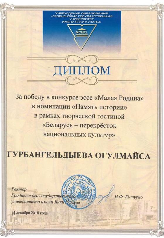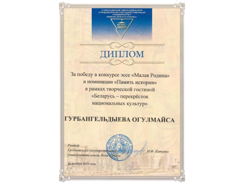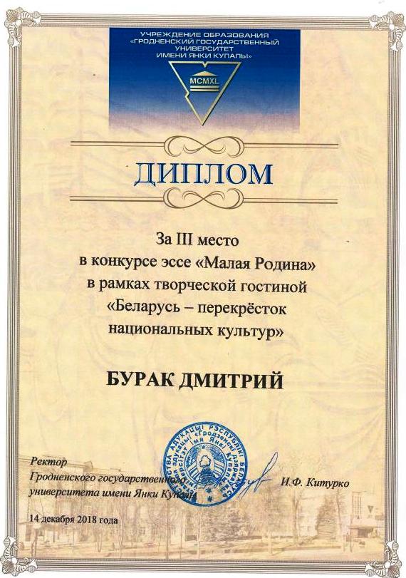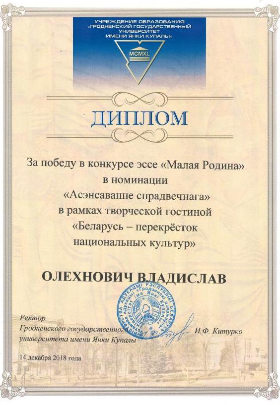 14 декабря 2018 года были подведены итоги дистанционного республиканского конкурса эссе "Малая родина", проходившего на базе Гродненского государственного университета имени Янки Купалы.