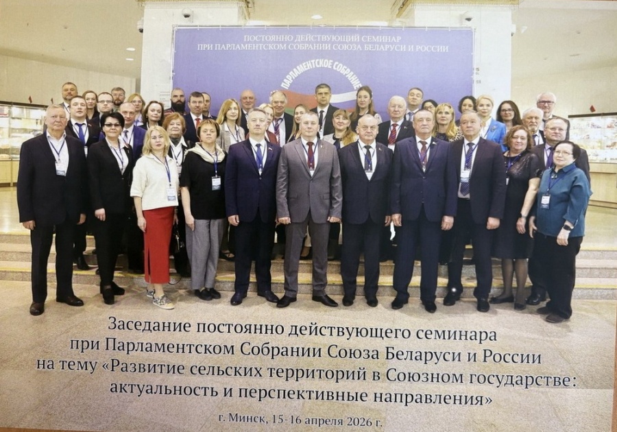 15-16 апреля 2026 года в г. Минске прошло заседание постоянно действующего семинара при Парламентском Собрании Союза Беларуси и России по вопросам строительства Союзного государства на тему «Развитие сельских территорий в Союзном государстве: актуальность и перспективные направления». В семинаре принимали участие члены и депутаты палат Национального собранияРеспублики Беларусь и Федерального Собрания Российской Федерации, ответственные должностные лица Постоянного Комитета Союзного государства, представители профильных министерств и ведомств, научно-исследовательских и образовательных учреждений и организаций, а также представители агропредприятий. От Белорусского государственного аграрного технического университета в форуме принял участие Н. С. Яковчик, директор Института повышения квалификации и переподготовки кадров АПК БГАТУ, доктор экономических наук, доктор сельскохозяйственных наук, профессор, иностранный член РАН, заслуженный работник сельского хозяйства Республики Беларусь. Николай Степанович представил доклад на тему «Кадровая политика и аграрная наука в технико-технологическом развитии сельскохозяйственной отрасли Союзного государства Беларуси и России».