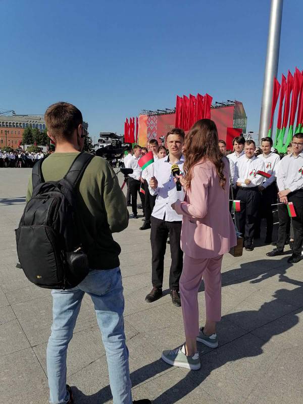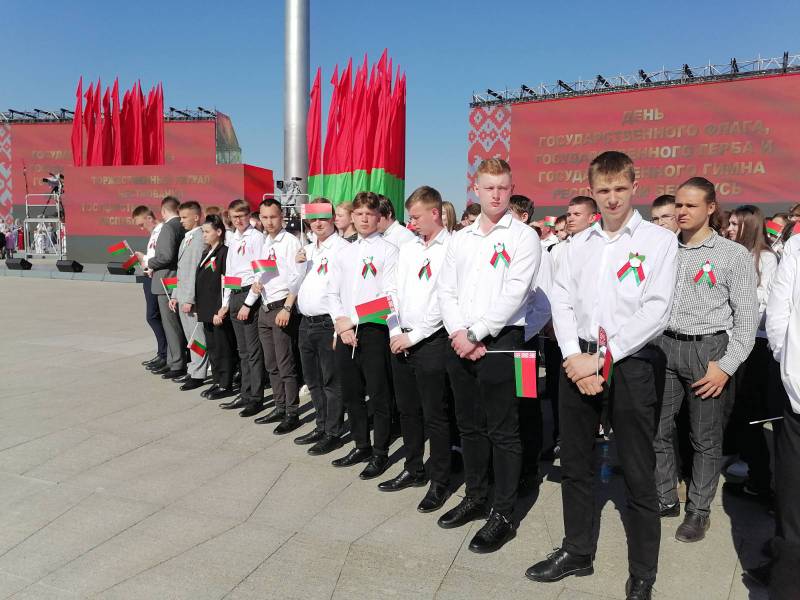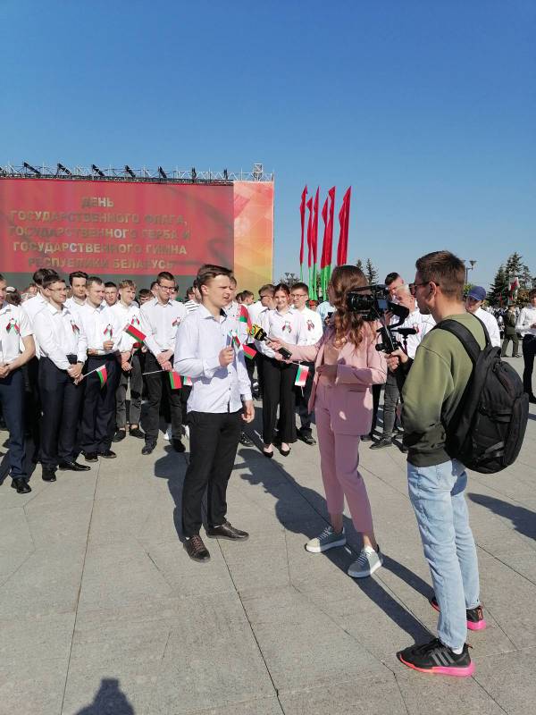 Студенческий актив БГАТУ во главе с первым проректором Мирановичем А.В. и проректором по безопасности, режиму и кадрам А.Г.Сугаком приняли участие в торжественной церемонии чествования государственных флага, герба и гимна, которая была сегодня организована на площади Государственного флага в Минске. На мероприятии с обращением Президента выступил премьер-министр Роман Головченко. Подробнее