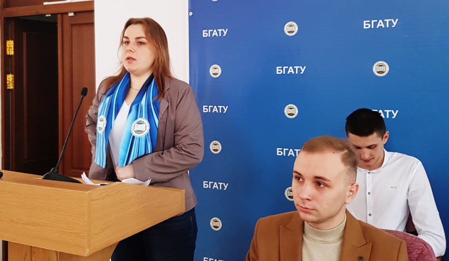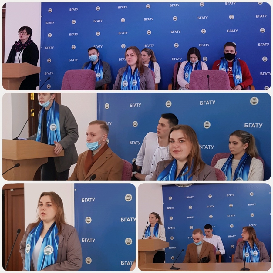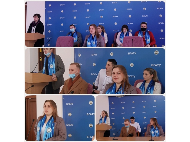 Перед гостями выступила декан факультета довузовской подготовки и профессиональной ориентации молодежи Гаркуша К.Э. В презентационной форме были представлены структура БГАТУ, итоги вступительной кампании 2020 года и особенности вступительной кампании 2021 года. Экскурсия по студенческому городку также обогатила представление гостей об университете.
