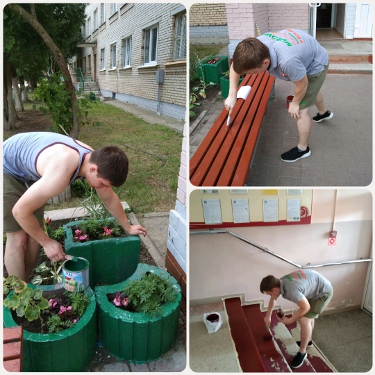 Центральным мероприятием этого дня стала республиканская акция "#За дело!". За дело активно взялись студенты, проживающие в общежитиях университета: мыли окна, красили ступеньки и порожки, поливали цветы, оформляли малые архитектурные формы. Не место красит человека, а человек место.