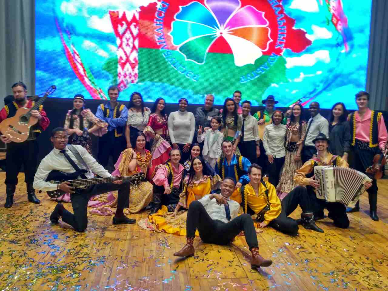 На одной сцене выступили представители 20 национальностей: армянской, русской, польской, азербайджанской, грузинской, корейской, цыганской, украинской, еврейской, молдавской, чувашской, татаро-башкирской, дагестанской, китайской, туркменской, венесуэльской, итальянской, английской,палестинской и представители ЮАР. прошло 13 декабря 2017 г. в большом зале Белгосфилармонии. БГАТУ представили студенты из ЮАР.