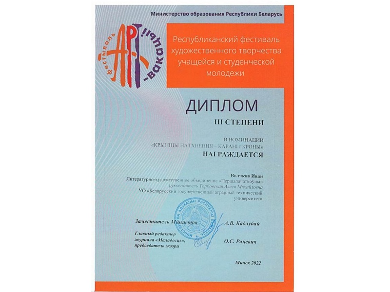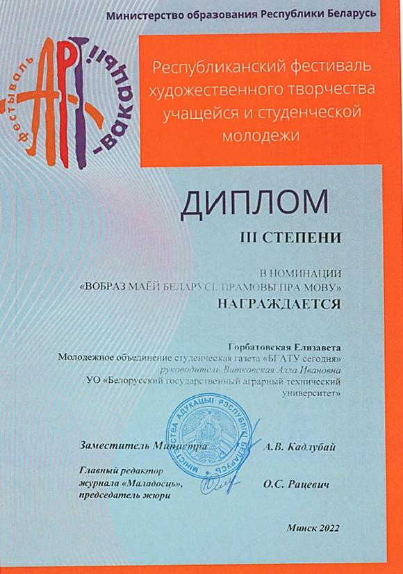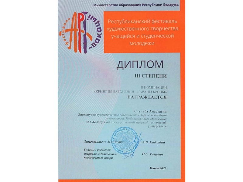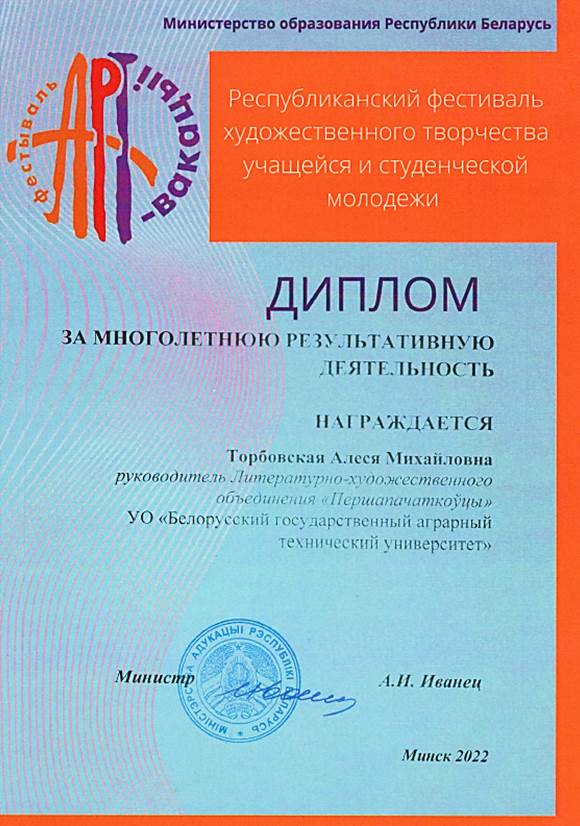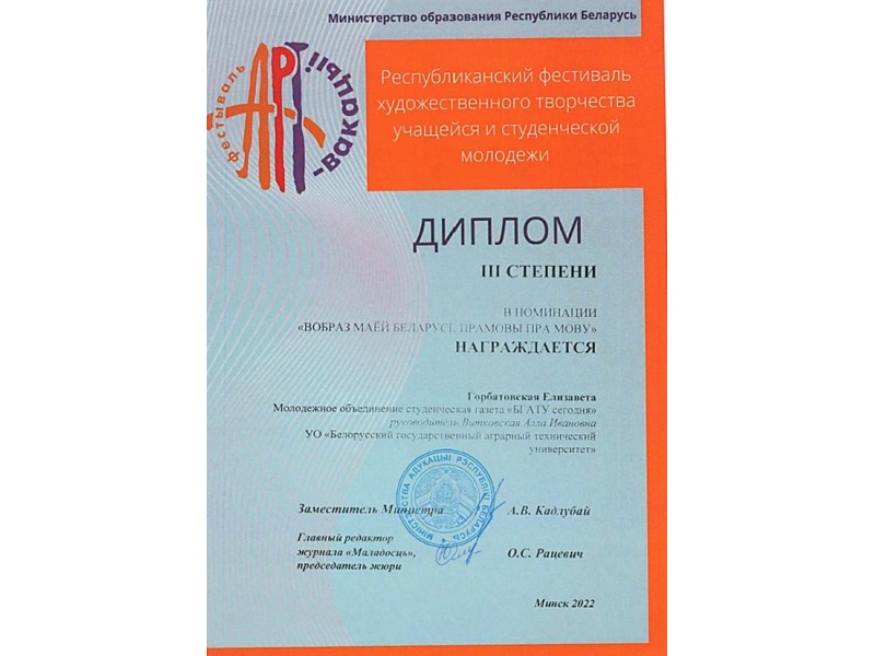 Итоги Республиканского фестиваля художественного творчества учащейся и студенческой молодёжи "АРТ-вакацыі"