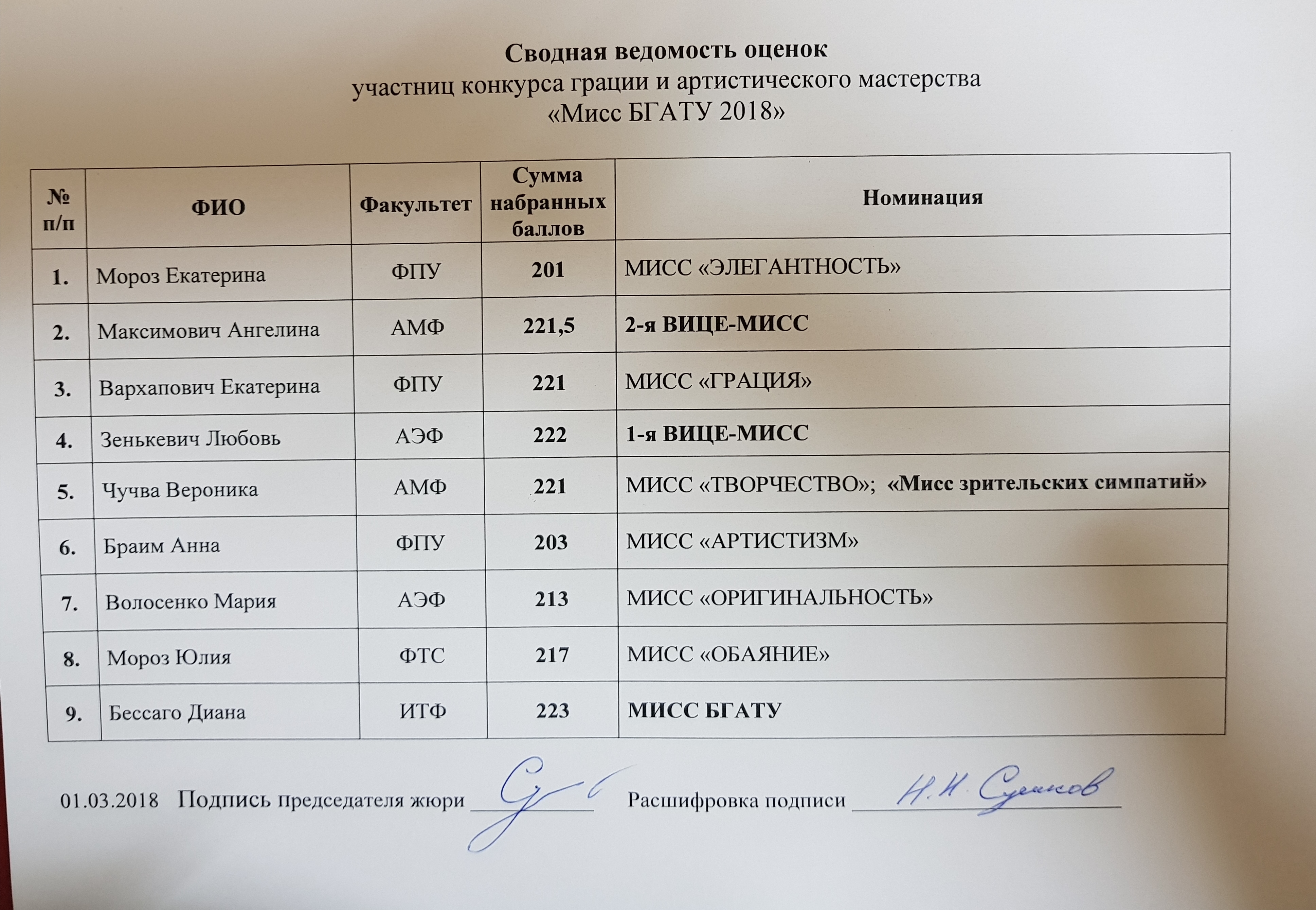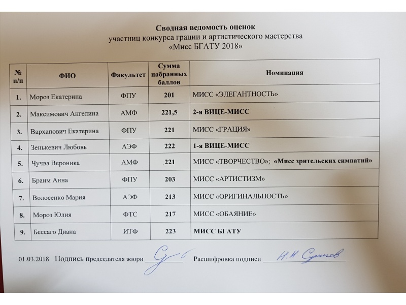 Мисс БГАТУ 01.03.2018