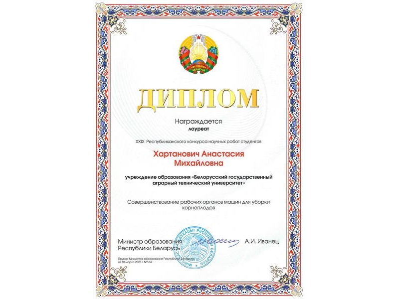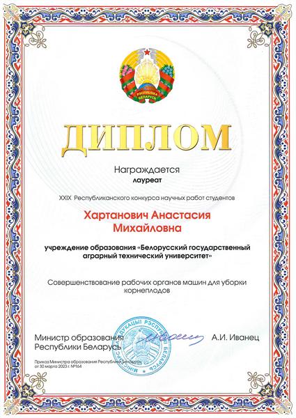 Награждение лауреатов XXIX Республиканского конкурса научных работ студентов