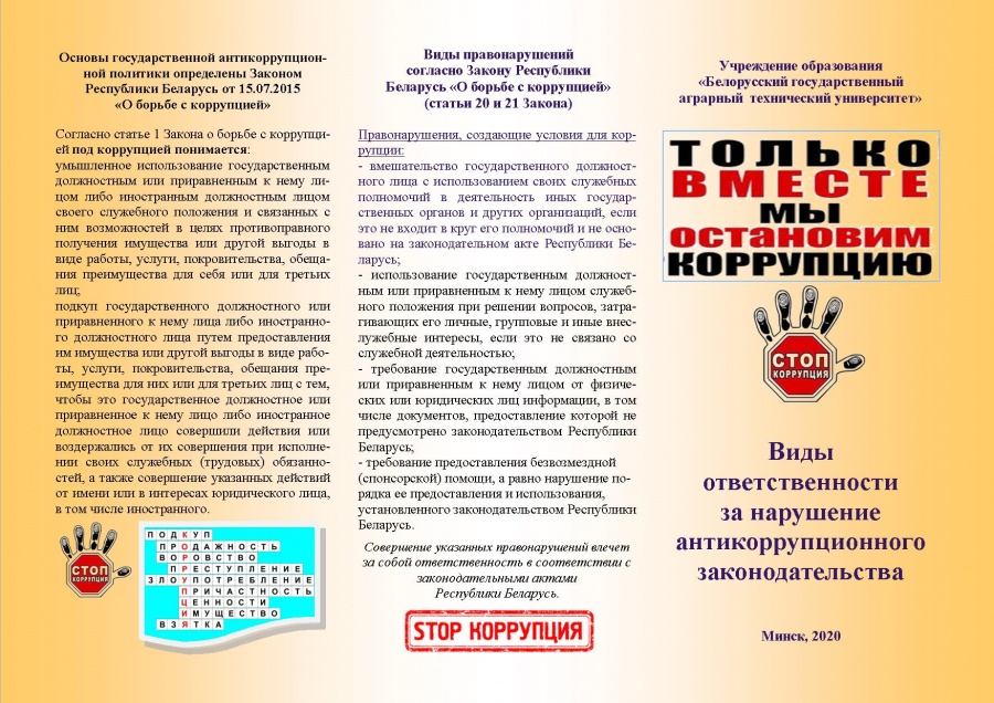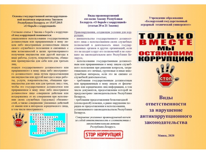 Основы государственной антикоррупционной политики определены Законом Республики Беларусь от 15.07.2015 «О борьбе с коррупцией».
