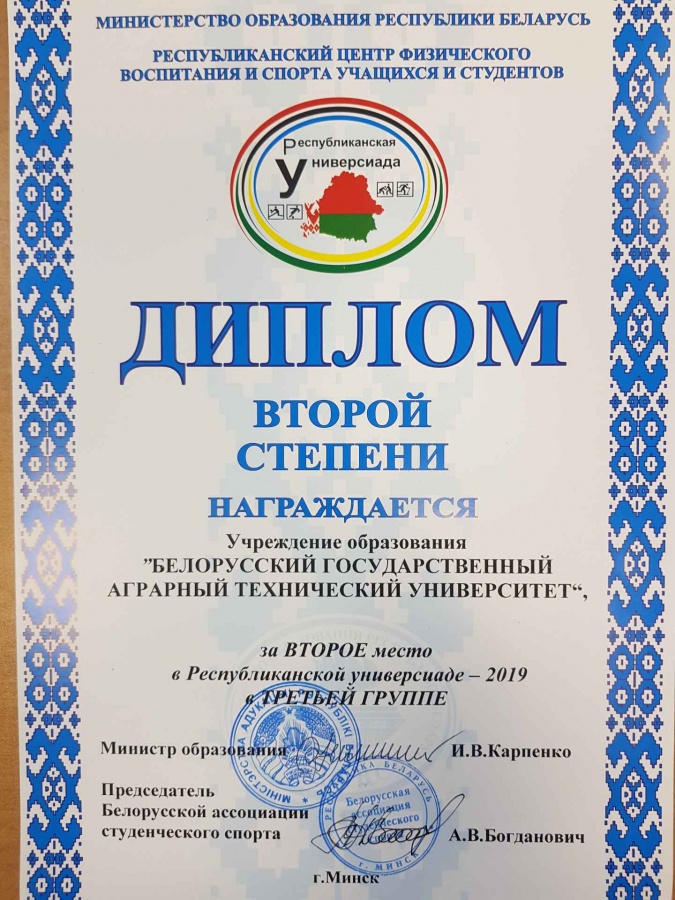 По итогам проведения соревнований Республиканской универсиады-2019 наш университет занял 2-е место в общекомандном зачете в третьей группе. Поздравляем!