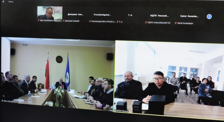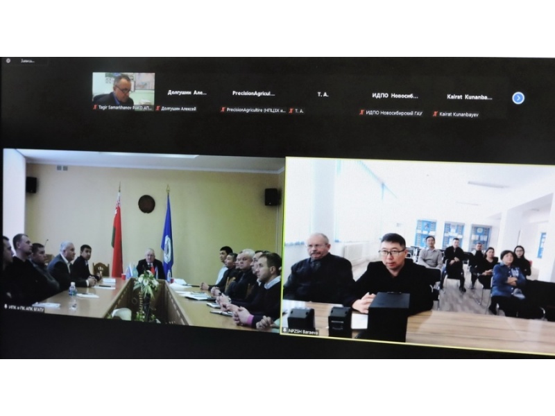 В формате ВКС участвовали:сотрудники Научно-производственного центра зернового хозяйства им. А.И. Бараева Республики Казахстан, в том числе эксперт в области интенсивного земледелия (ресурсосберегающие технологии возделывания сельскохозяйственных культур, система точного земледелия, органическое земледелие,) Заболотских Владимир Владимирович и эксперт в области агрохимии (агрохимическое обследование и анализ почвы, внесение системы минеральных удобрений по результатам агрохимического обследования) Кунанбаев Кайрат Кайырбекович, ППС Института дополнительного профессионального образования и Инженерного института Новосибирского гасударственного аграрного университета, заместитель руководителя Федерального центра сельскохозяйственного консультирования Российской академии кадрового обеспечения агропромышленного комплекса Самарханов Тагир Гильметдинович.