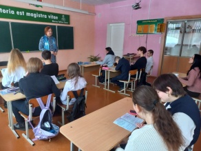 Для лучшего усвоения знаний в качестве иллюстраций к ответам Наталья Петровна использовала плакаты студентов БГАТУ – участников выставки ко Дню Конституции Республики Беларусь, состоявшей в нашем университете 14 марта 2019 года, и рассказала, что учиться в БГАТУ очень увлекательно и занимательно. Школьники задавали и вопросы о профориентации. Наталья Петровна показала презентацию о БГАТУ и обратила внимание на особенности поступления и интересные моменты обучения в нашем университете. Обсуждение темы вызвало живой интерес и отклик у школьников, ведь это поможет им определиться с выбором кем они хотят стать.