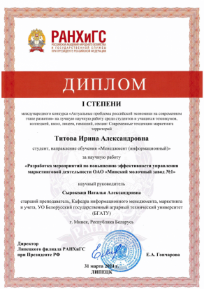 ФИО руководителя: Сырокваш Наталья Александровна, старший преподаватель, кафедры информационного менеджмента, маркетинга и учета»