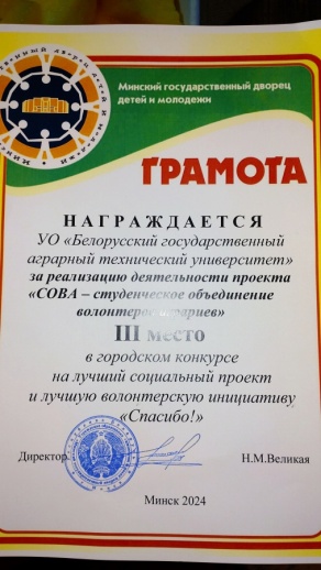 16 мая были подведены итоги городского конкурса на лучший социальный проект и лучшую волонтерскую инциативу "Спасибо!", который проходил в Минском государственном дворце детей и молодежи.