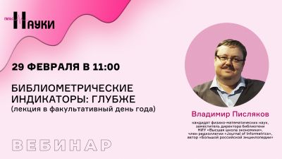 Приглашаем вас на вебинар "Библиометрические индикаторы: глубже (лекция в факультативный день года)", который состоится завтра, 29 февраля, в 11:00 (мск).