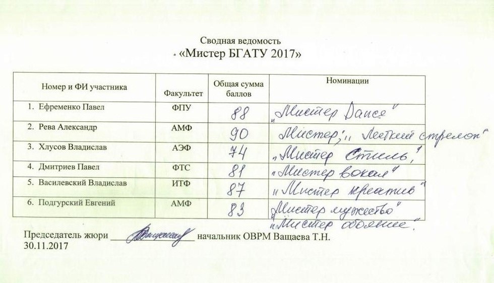 Мистеры БГАТУ