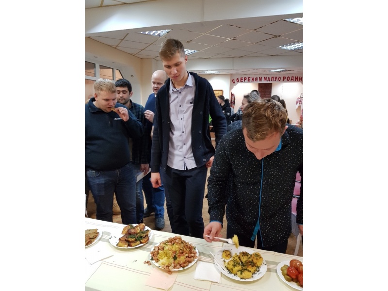 26 ноября 2018 года в общежитии №2 студенческого городка БГАТУ прошёл кулинарный поединок "Картофельные фантазии". По традиции - каждый этаж представил свои кулинарные шедевры. Компетентное жюри оценивало блюда по 3 критериям: вид, вкус и название. Поздравляем студентов, проживающих на 2 этаже с ПОБЕДОЙ!