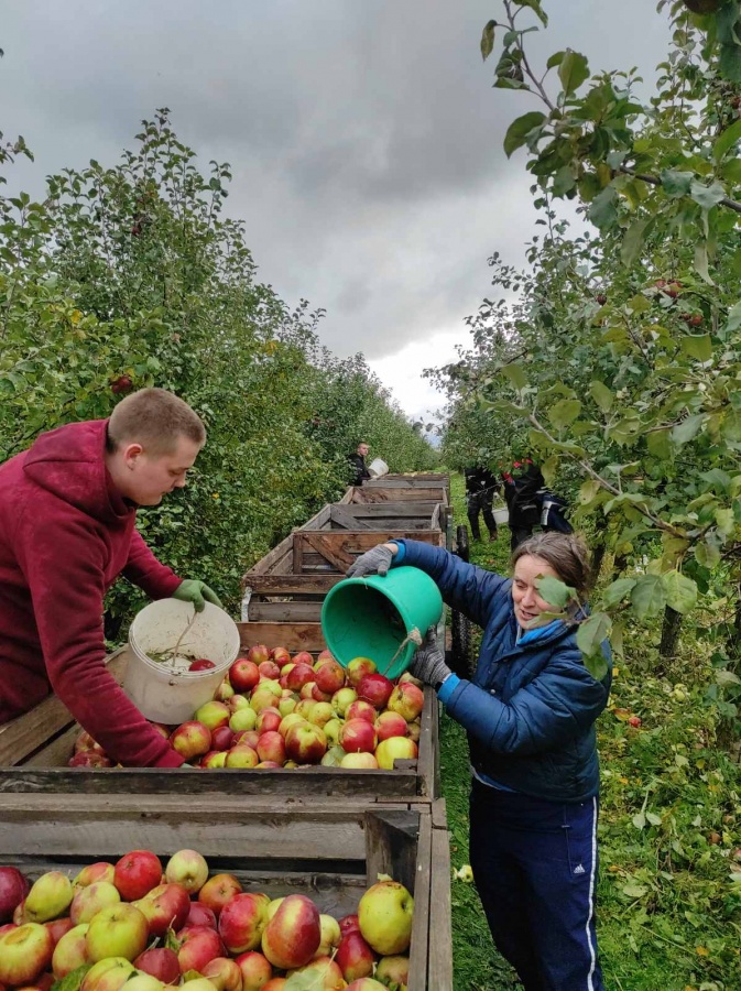 Но по-настоящему познать друг друга, сплотиться и понять, что значит быть командой, ребята смогли только здесь — на уборке урожая. С 13 по 25 октября две бригады по 16 человек, вместе с опытными агрономами хозяйства и куратором учебной группы Н.Г. Серебряковой, работают в садах «Ждановичей». Каждый день — это не только физический труд, но и уроки мастерства, общения, взаимопомощи.